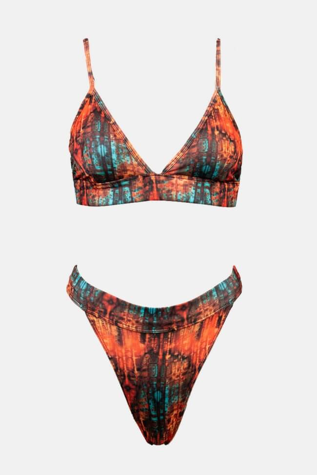 Set costum de baie bikini triunghiular cu talie înaltă