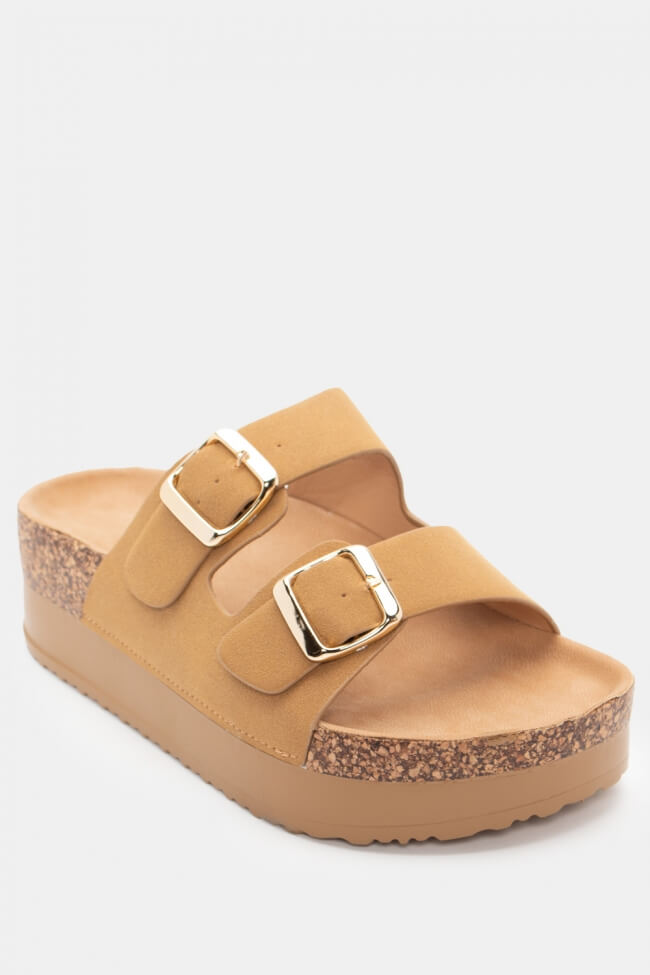 Σανδάλια Flatform με Διπλές Τόκες Από Δίχτυ