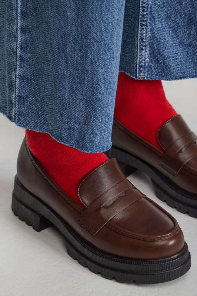 Loafers care sunt joși sunt incredibil de versatili. Îi poți combina cu orice – de la blugi skinny și pantaloni cu talie înaltă, până la fuste și rochii.