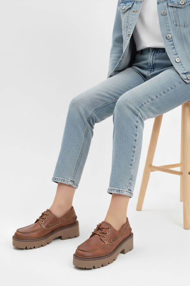 Cu Jeans Cropped: Loaferele sunt combinația perfectă pentru jeans cropped și un top simplu. Știi de ce? Pentru că loaferele cu șiret nu trebuie să fie ascunse de pantaloni. Sunt pantofi care trebuie să iasă în evidență.