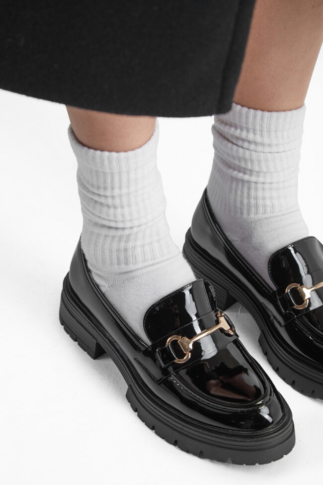 Alege loafere înalte cu detalii metalice sau în texturi specifice, precum catifeaua sau lacul, și poartă-le cu o rochie maxi sau o fustă mini pentru un rezultat glam.