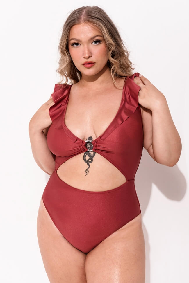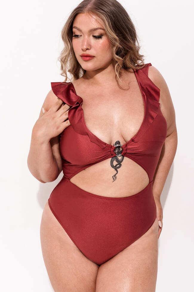 GIGI-Costum de baie Top Rip cu Un Umăr Plus Size