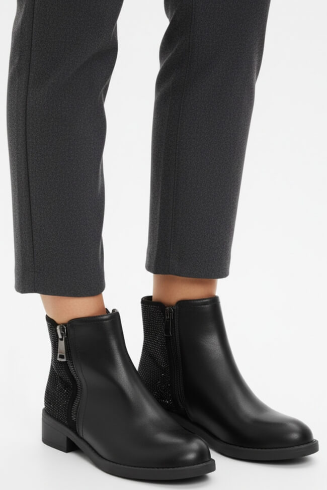 Μποτάκια Αστραγάλου με Διακοσμητικό Φερμουάρ & Strass