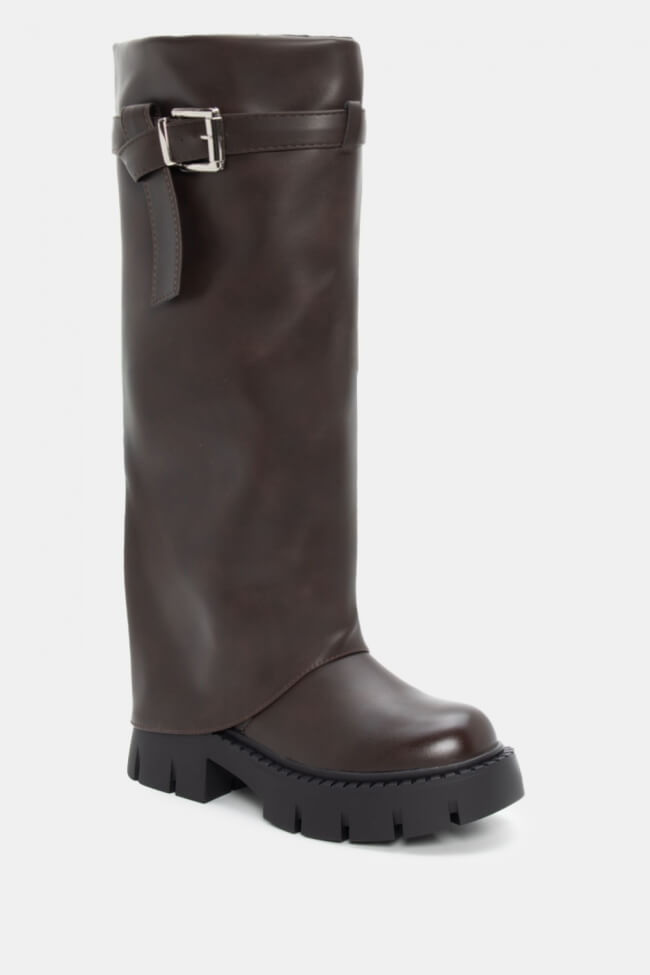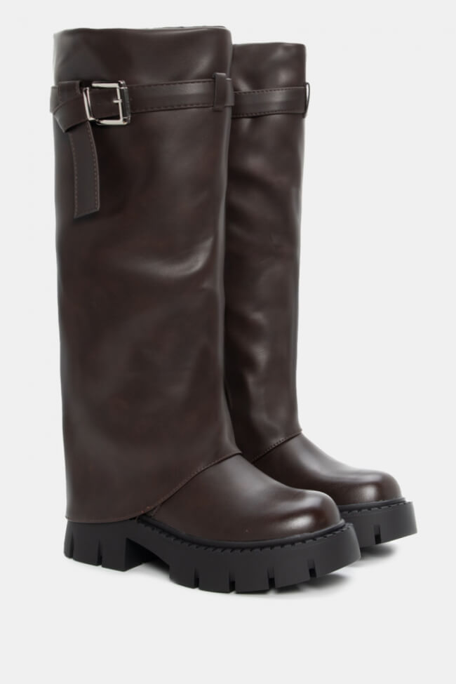Cizme cu Efect de Manșetă Rabatabilă & Curea Decorativă
