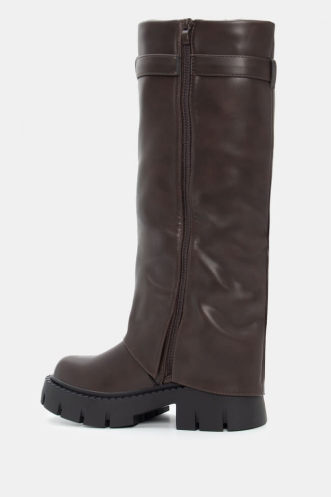 Cizme cu Efect de Manșetă Pliabilă & Fermuar Decorativ