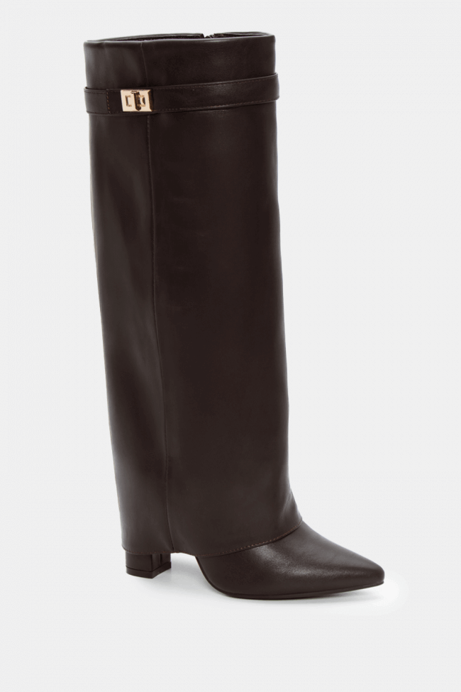 Cizme cu Vârf Ascuțit cu Efect de Manșetă Pliabilă & Curea Decorativă