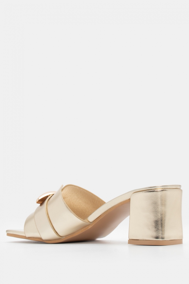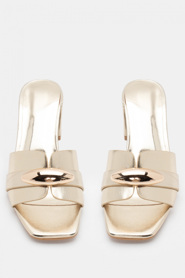 - Cu cataramă metalică: Statement, classy și foarte chic. Dacă vrei să îmbunătățești chiar și cea mai basic ținută, acest mule feminin este ce trebuie. Poți să îl porți atât la birou, cât și la o băutură de seară. Da, atât de versatil.