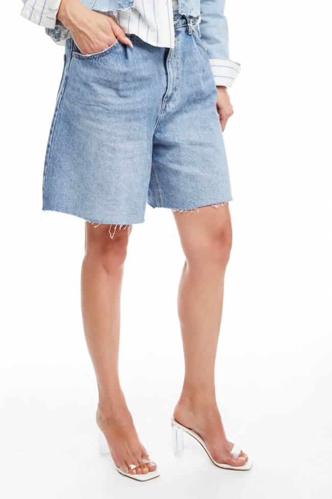 - High-waisted jeans & crop shirt for 00’s vibes.