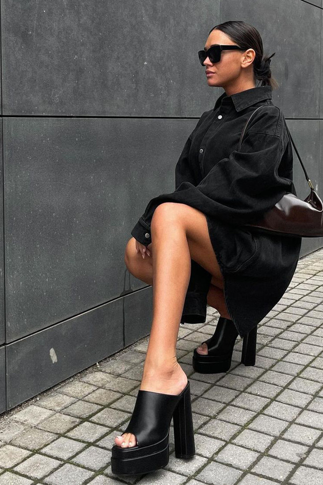 Want height but don\'t go with the classic high heel sandal; Try high-heeled mules sandals and say goodbye to tight straps. They match perfectly with wide-leg pants, elegant summer dresses, and, of course, with that sexy black mini you save for "special occasions".