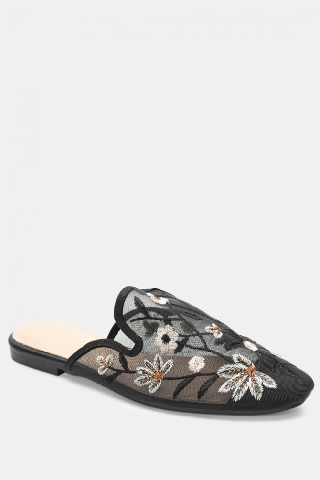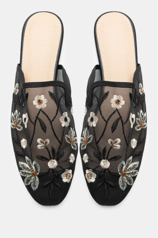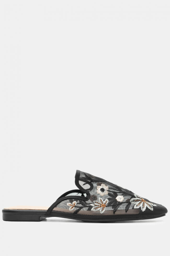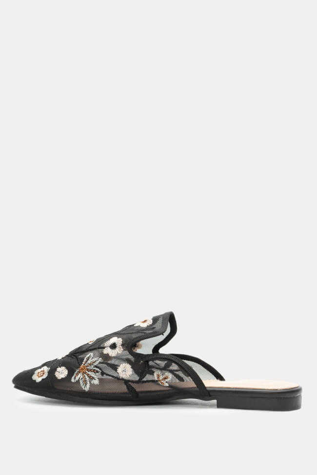 Mocasini tip Mules cu Flori Decorative