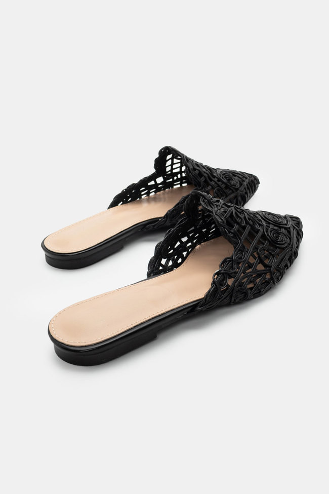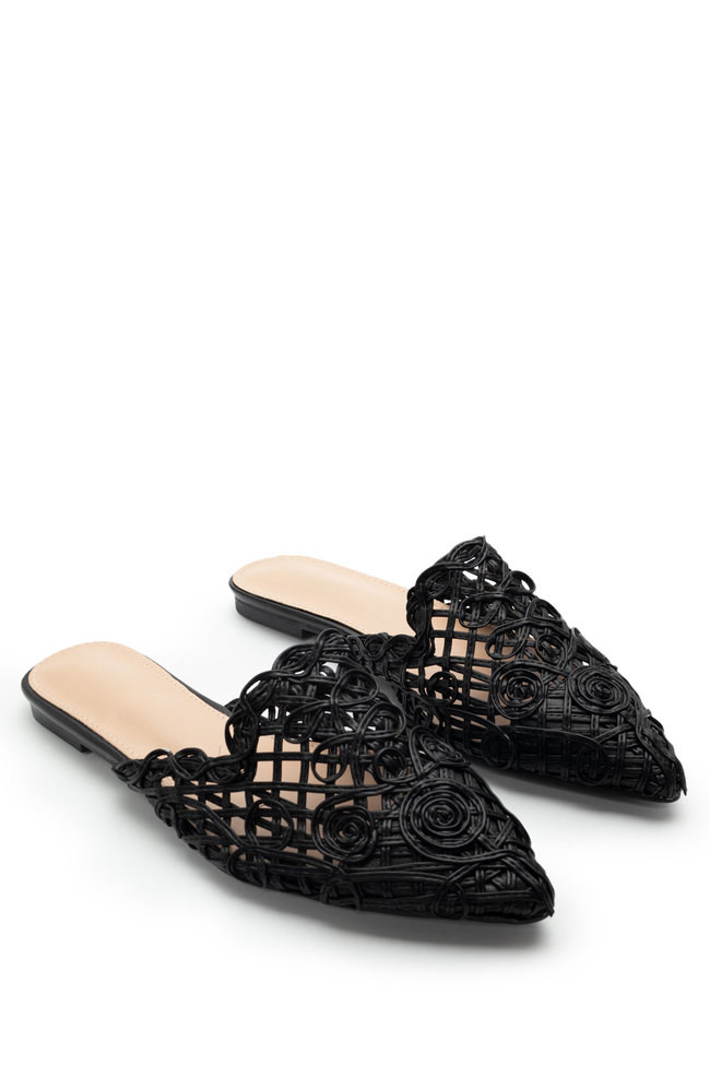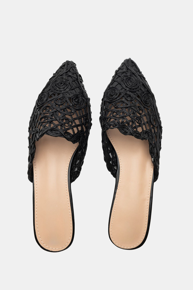 - Optează pentru mules deschise din raffia, in sau piele: Oferă un vibe boho sau minimal și se potrivesc perfect cu outfit-uri de vară.