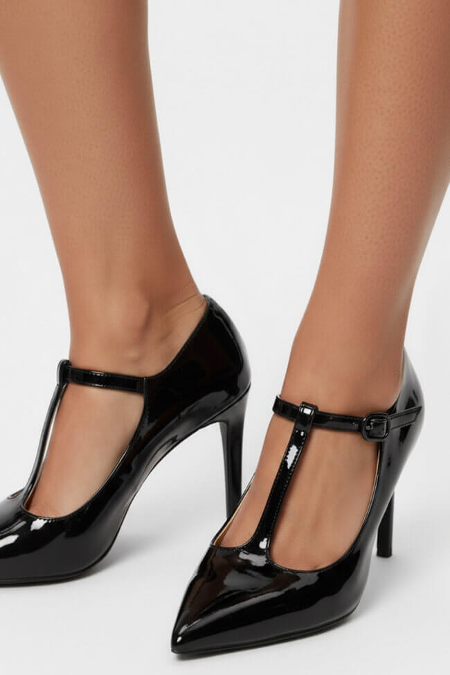 Pantofi cu vârf ascuțit cu bareta