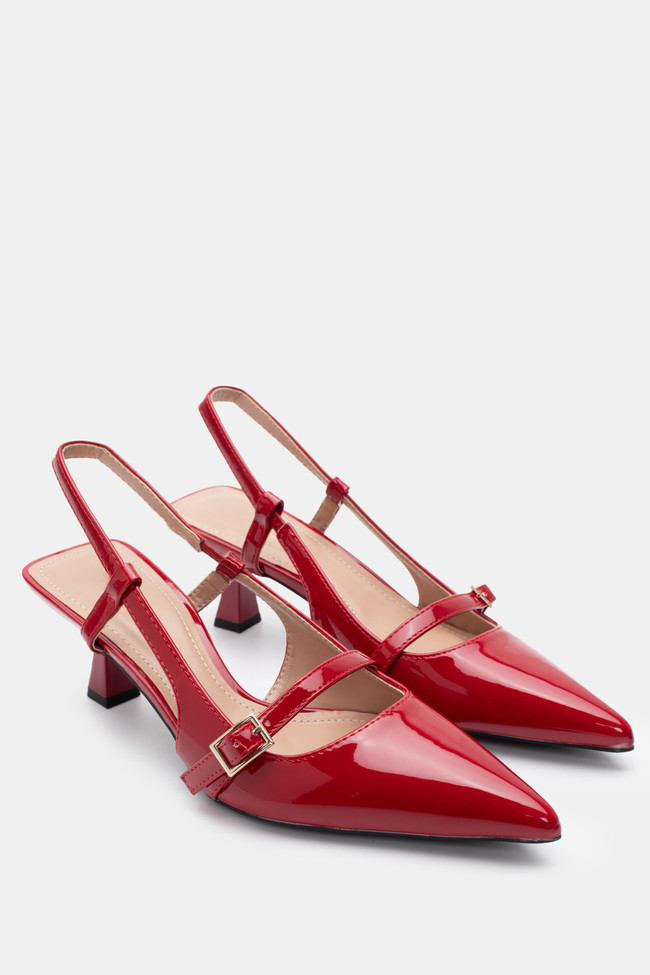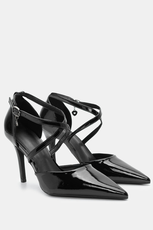 Scarpe con Tacco Aperto a Punta con Cinturino Decorativo