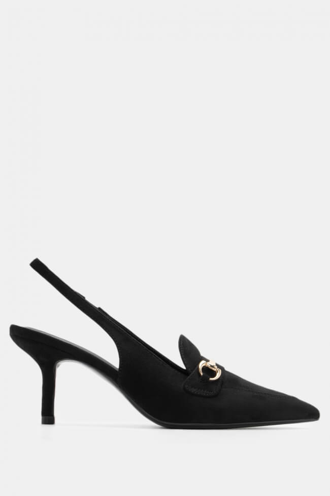 Pentru un look minimalist, poartă pantofi slingback cu vârf ascuțit cu pantaloni croiți și o cămașă sau blazer. Dacă alegi pantofi cu ornamente, combină-i cu o fustă midi și bijuterii minimaliste pentru un rezultat sofisticat.