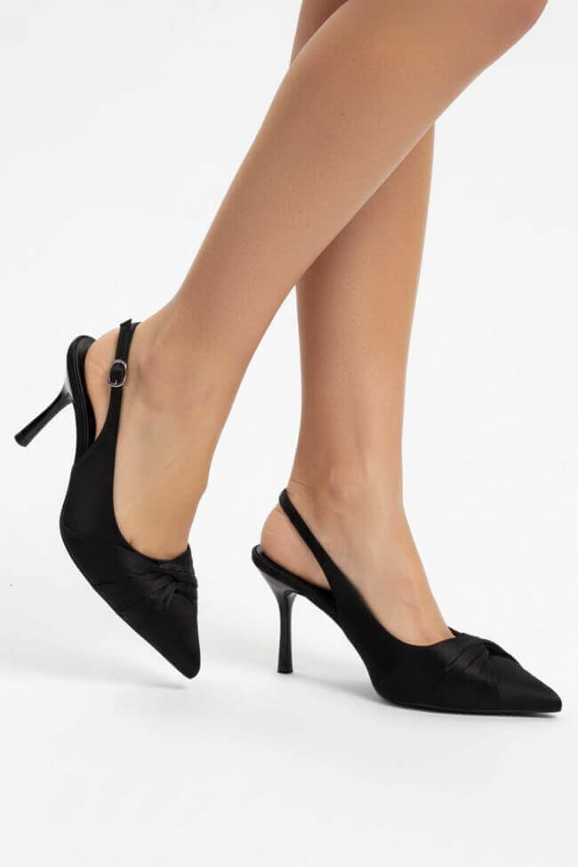 Pantofi cu toc ascuțit cu fundiță decorativă