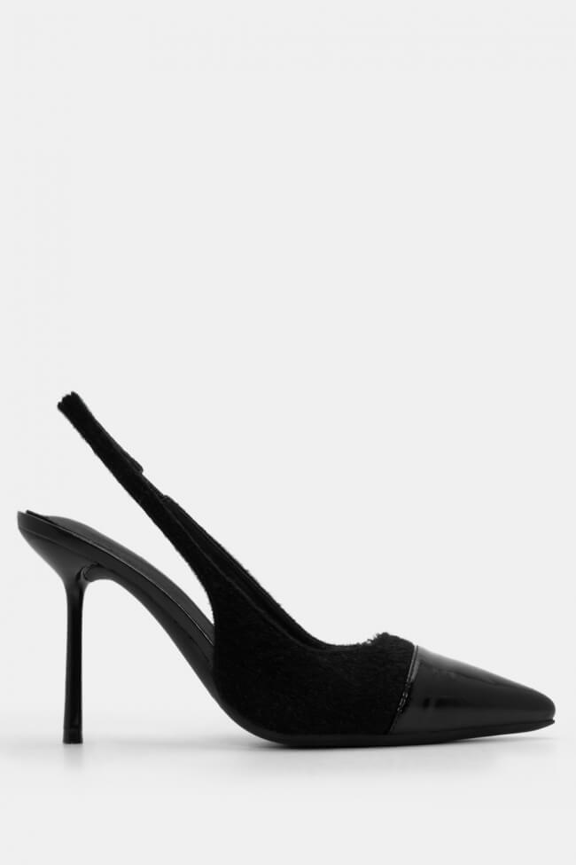 Pantofi stiletto cu vârf ascuțit, cu elastice și cataramă Slingback