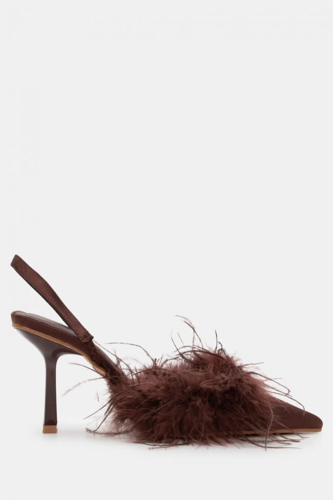 Pantofi cu Toc Ascuțit cu Accente de Blană Decorativă