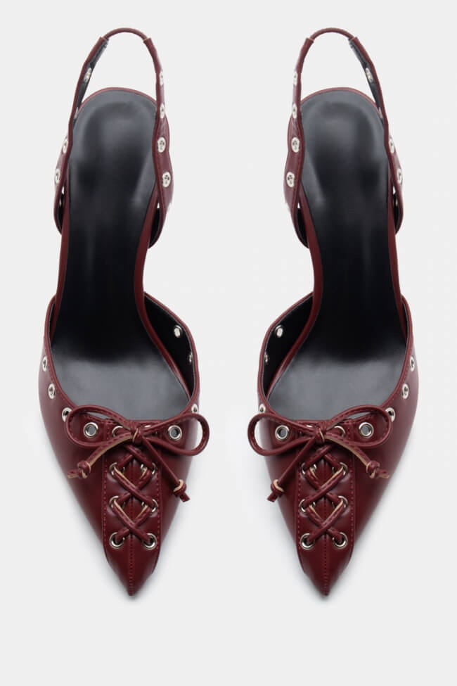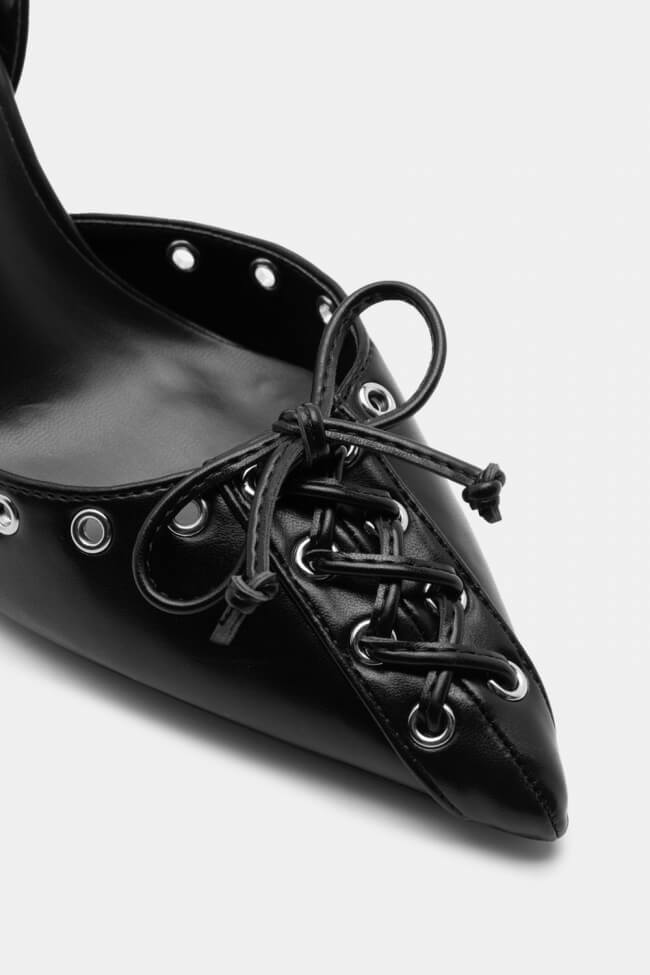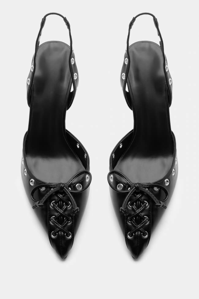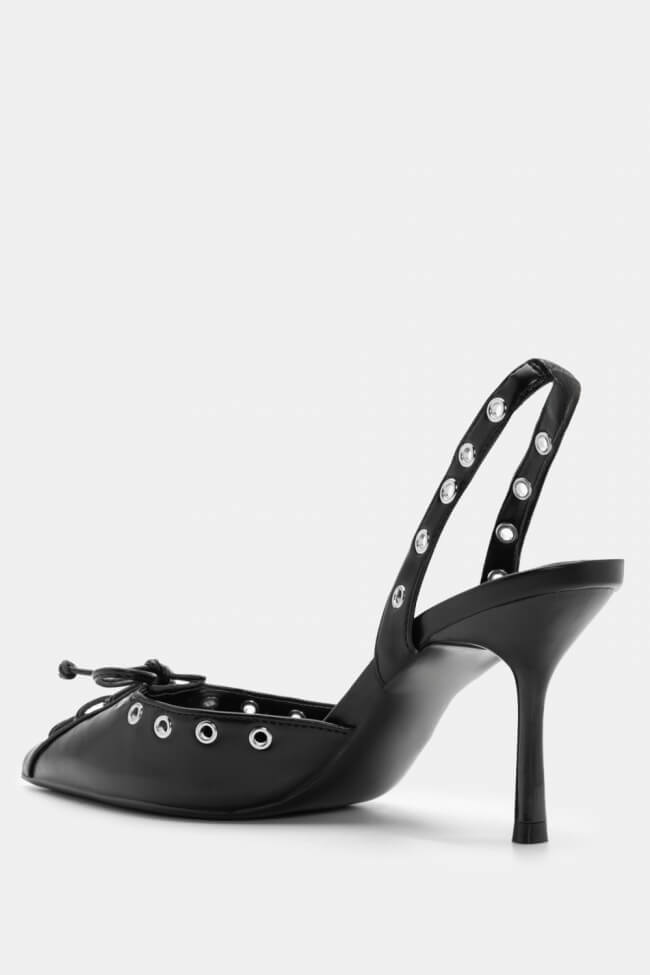 Pointed Pumps with Studs & Decorative Bow