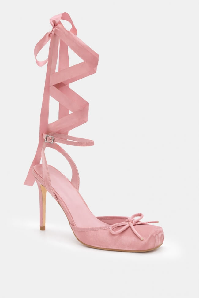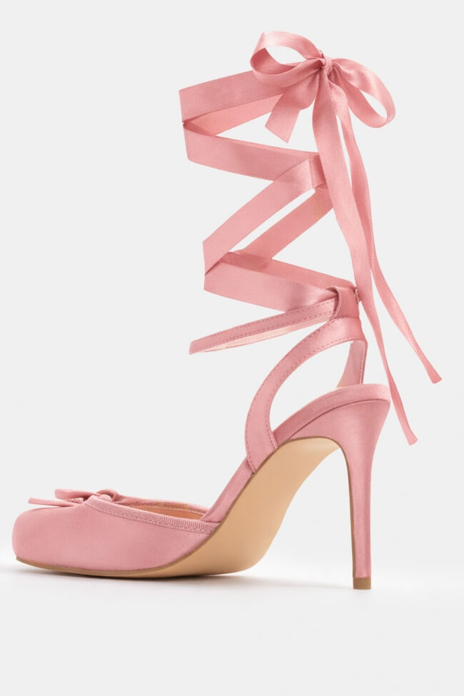 Pantofi stiletto cu șiret și fundiță decorativă