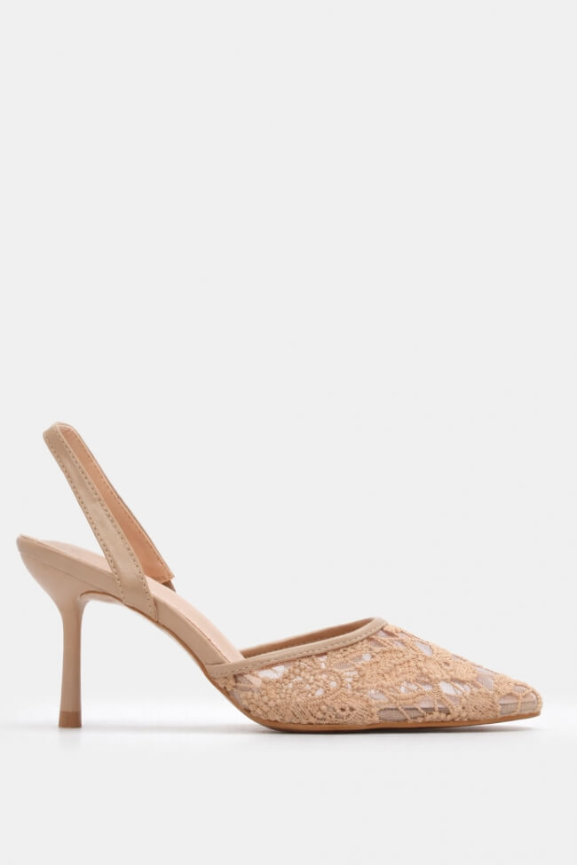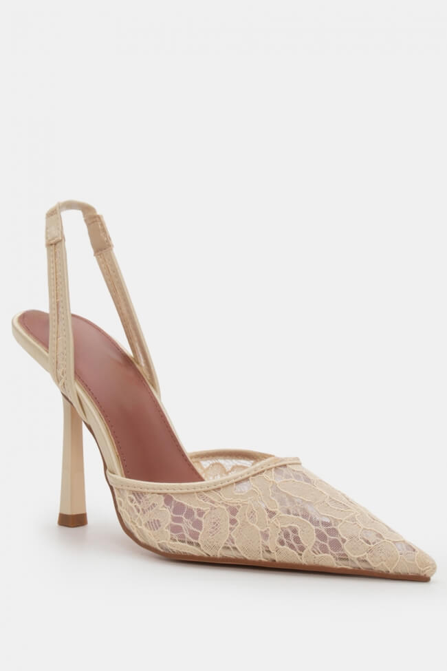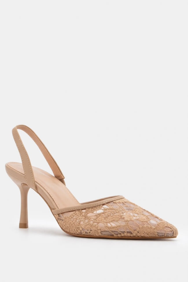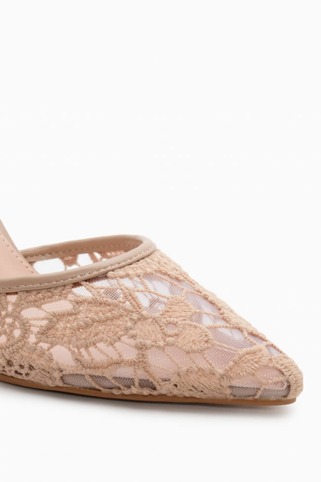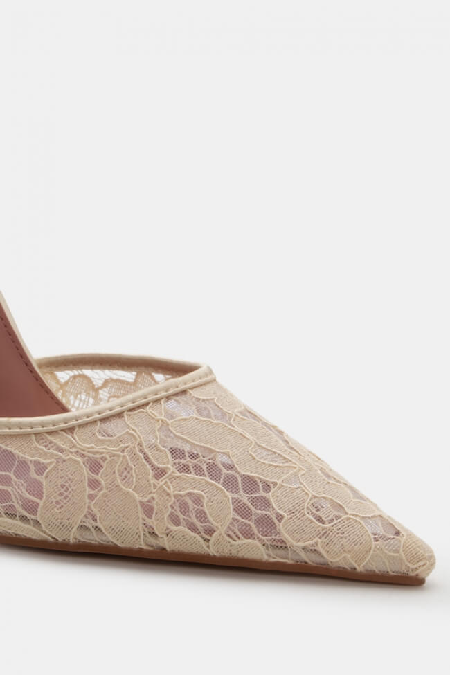Pantofi cu Toc cu Plasă & Accesorii din Dantelă
