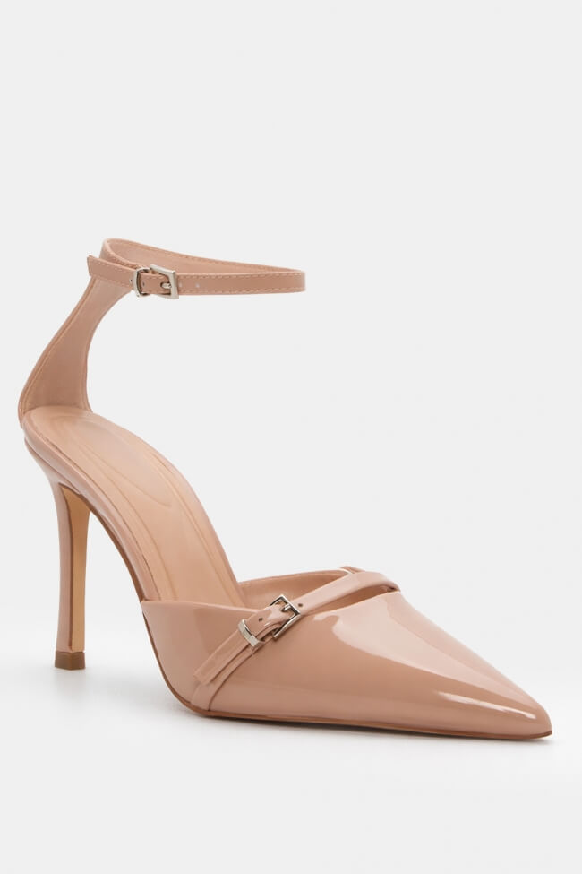 Pantofi cu Toc din Lac cu Vârf Ascuțit și Barete Înnodate