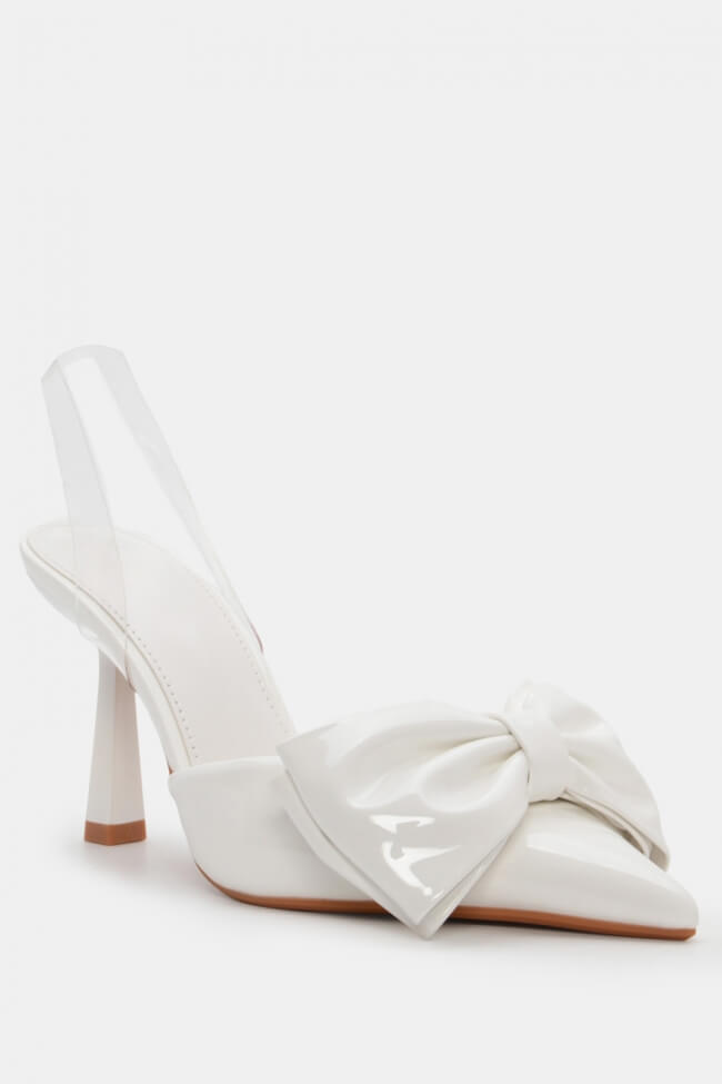 Pantofi cu Toc Ascuțit cu Barete Transparente & Fundă