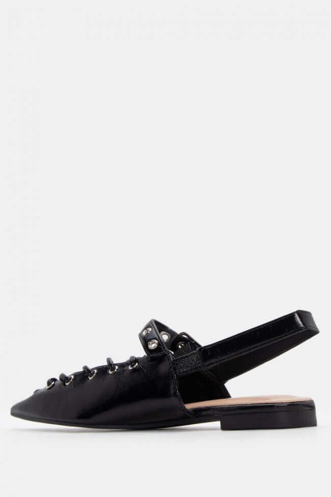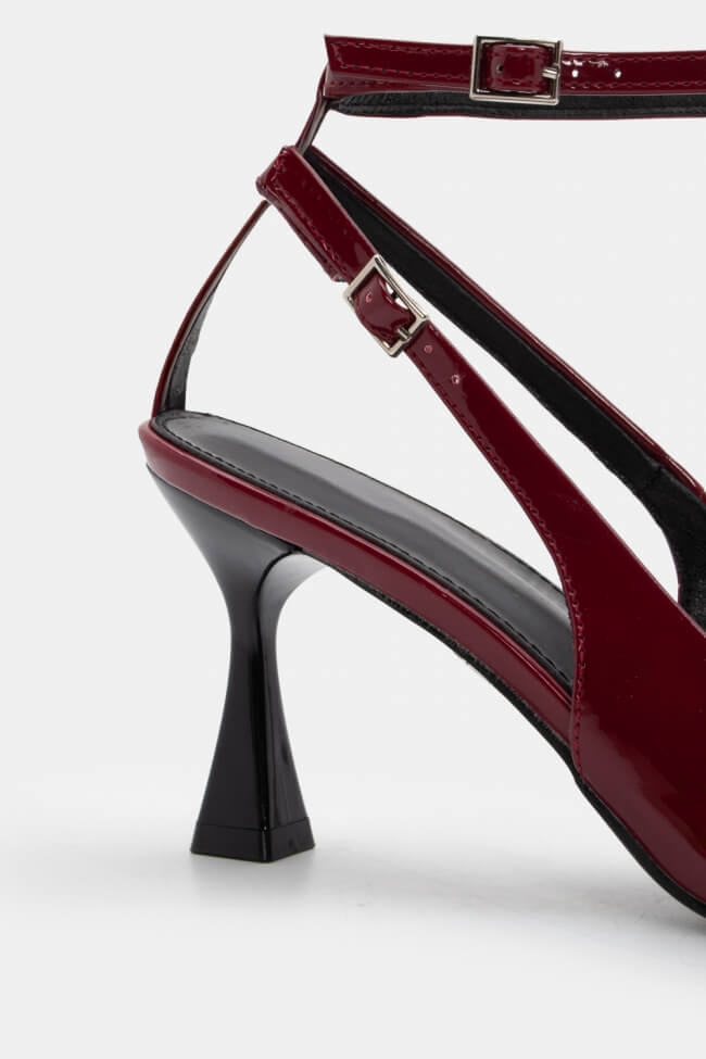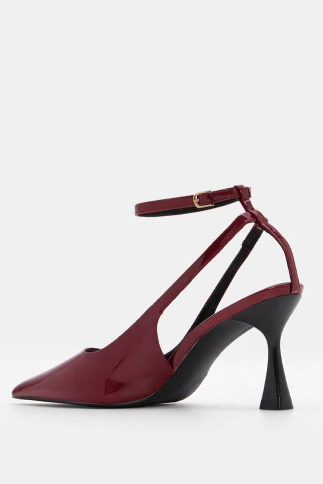 Pantofi cu Toc din Lac cu Vârf Ascuțit și Barete Înnodate