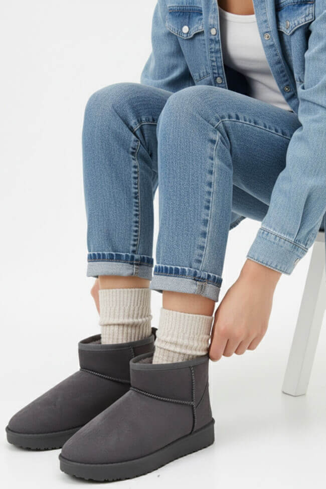 Botine cu Talpă Dublă și Căptușeală Interioară din Blană