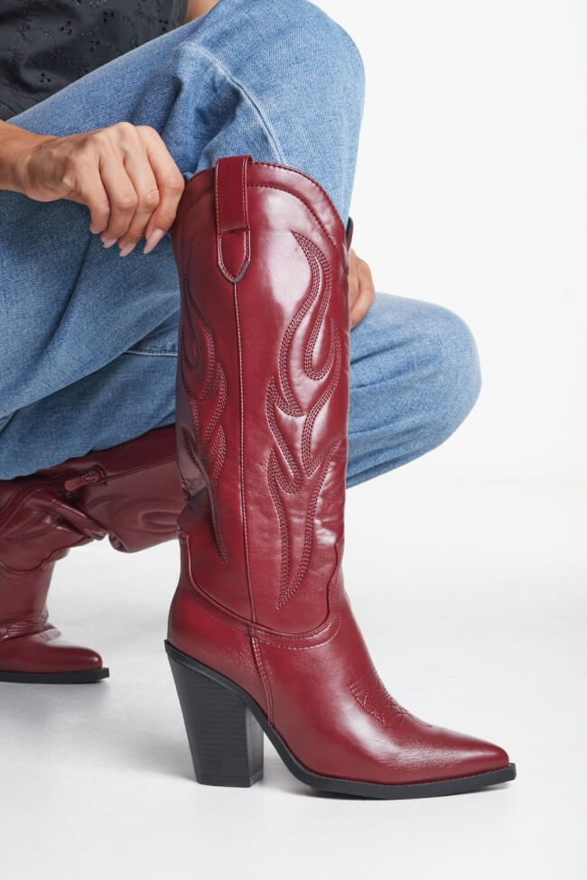 Cizme cowboy cu vârf ascuțit și decorațiuni cu flăcări din strasuri