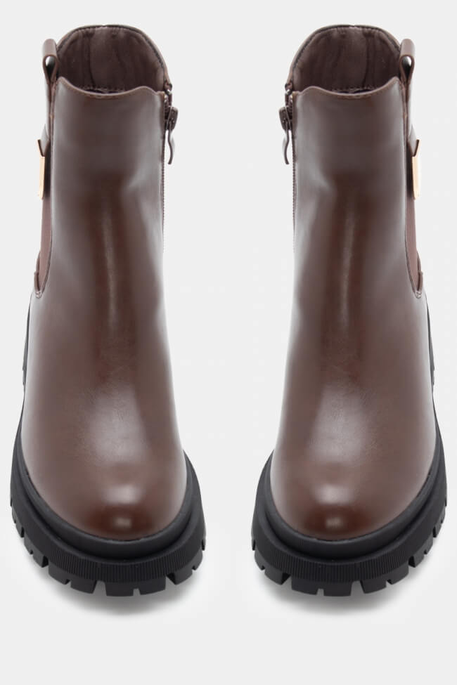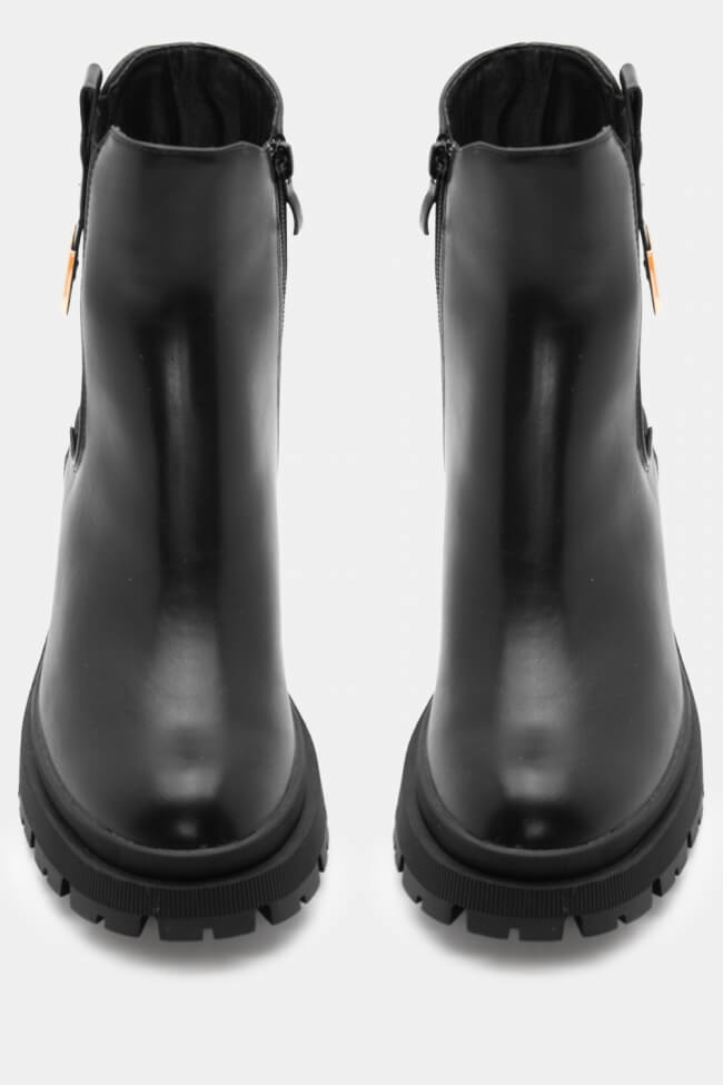 Botine cu talpă dublă și fermoar în față