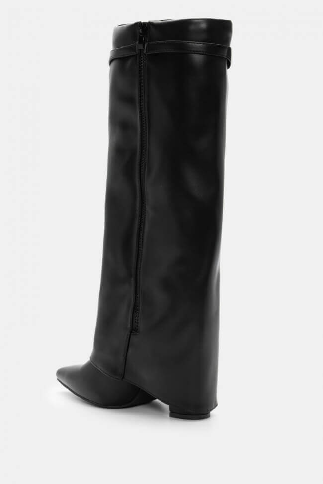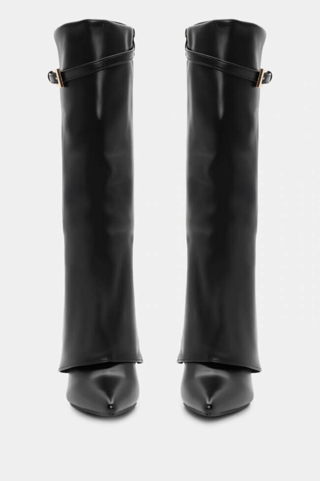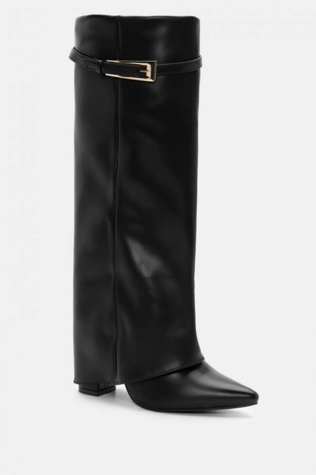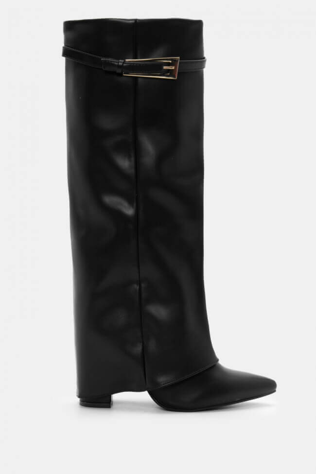 Cizme cu Vârf Ascuțit cu Efect de Manșetă Pliabilă & Curea Decorativă
