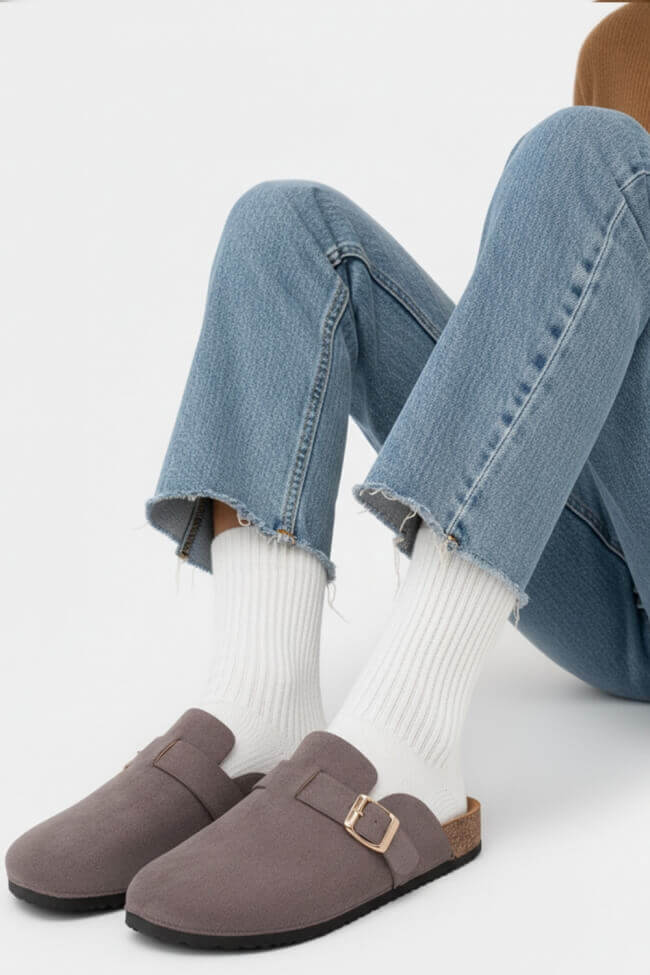 Clogs Sabot cu Talpă Dublă și Curea Decorativă