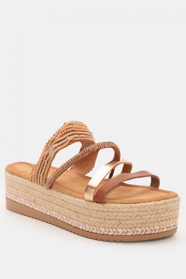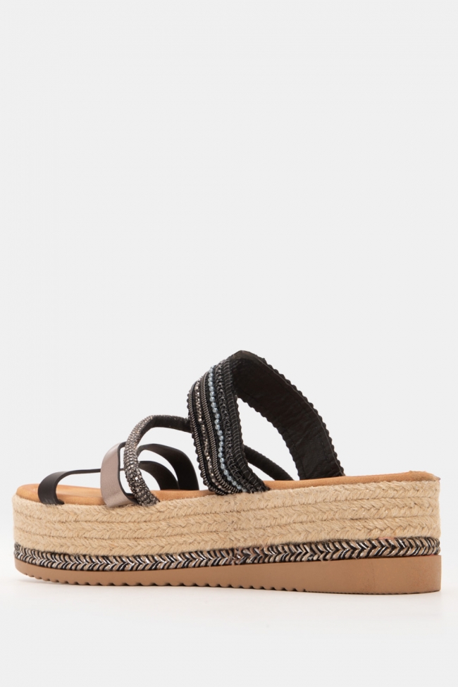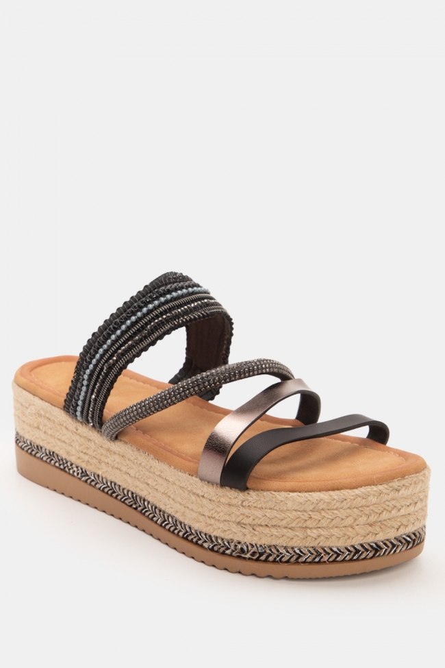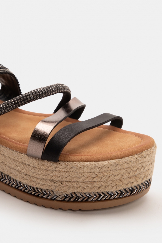 Sandale tip espadrile cu platformă, bretele și strasuri