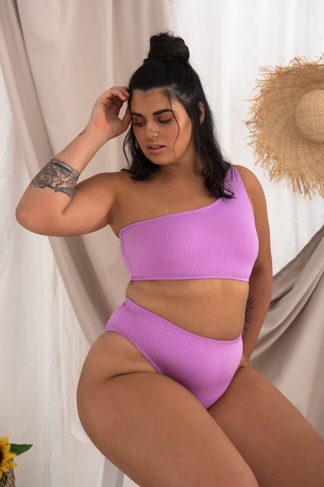 GIGI-Бански топ с едно рамо и връзка Plus Size