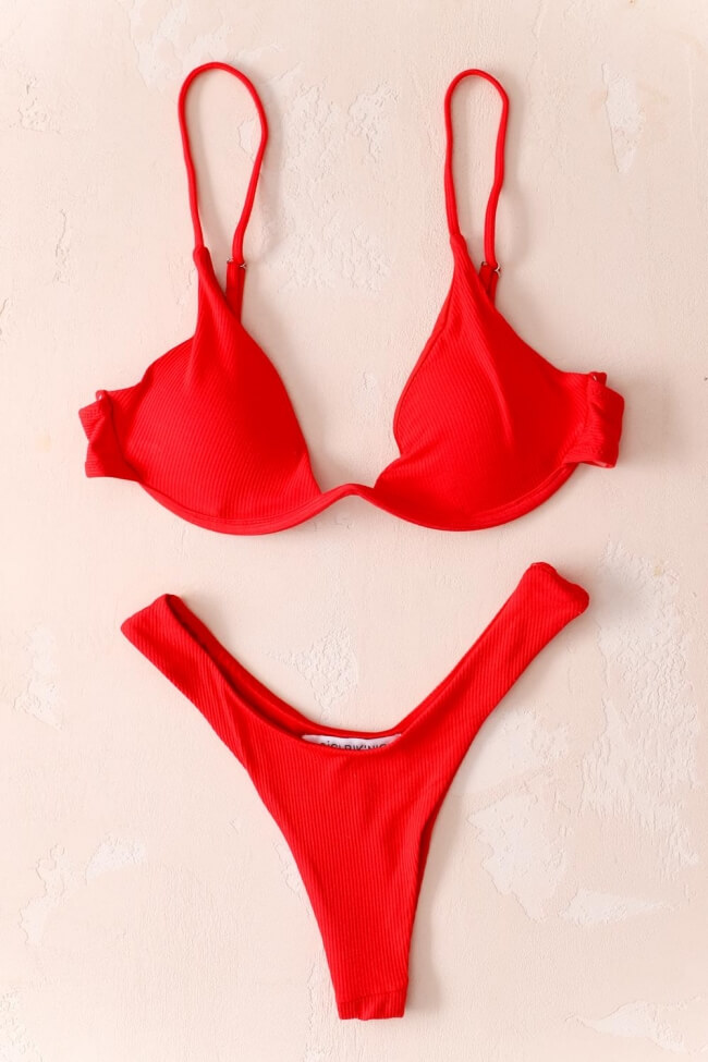GIGI-Set Costume de baie Bikini Rib cu un Umăr