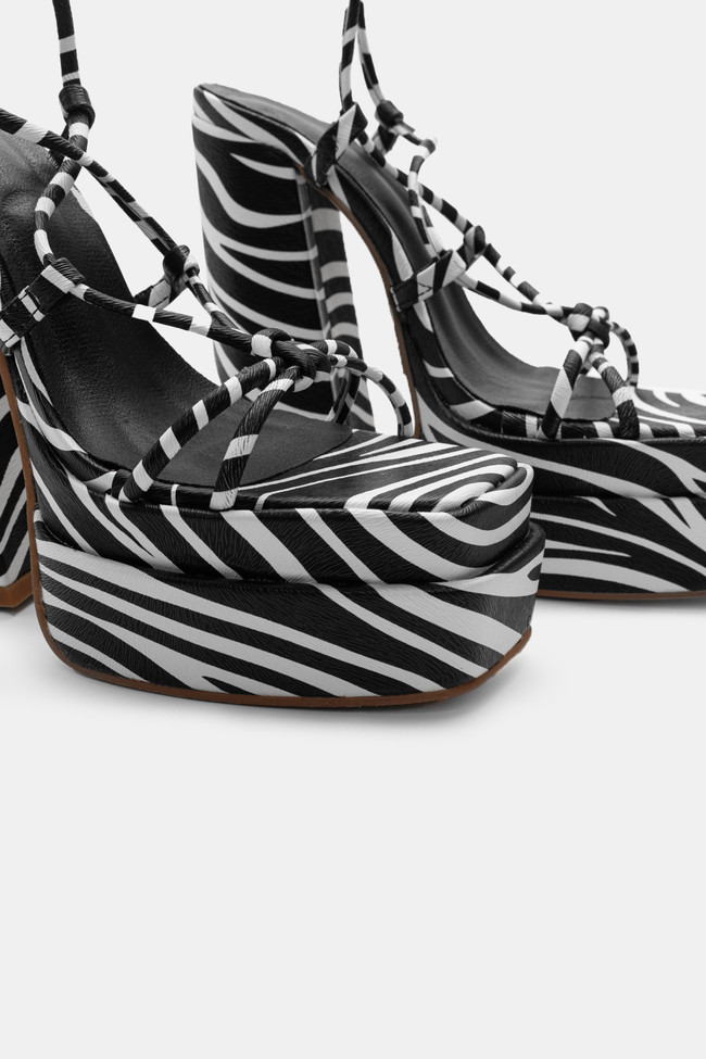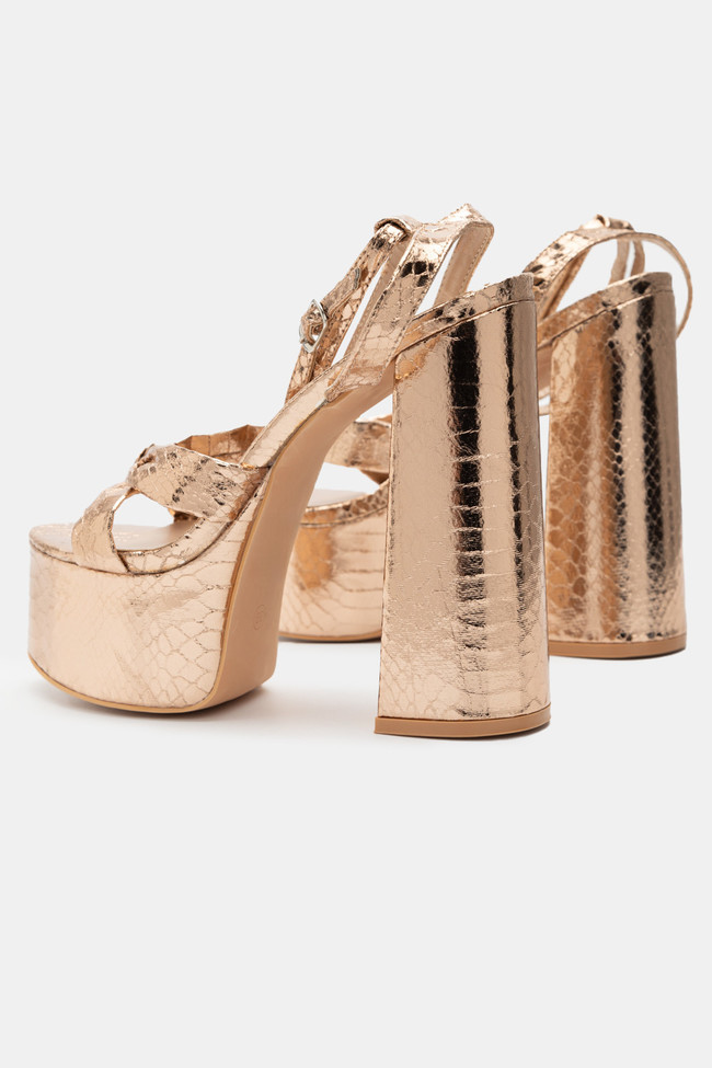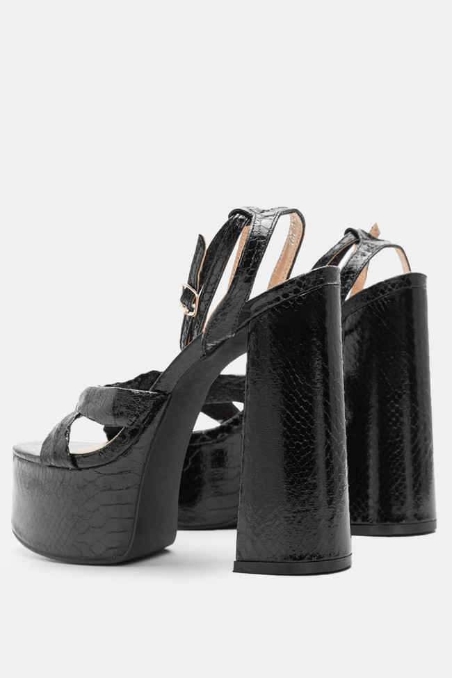 Sandale cu Toc și Platformă, Imprimeu cu Șarpe