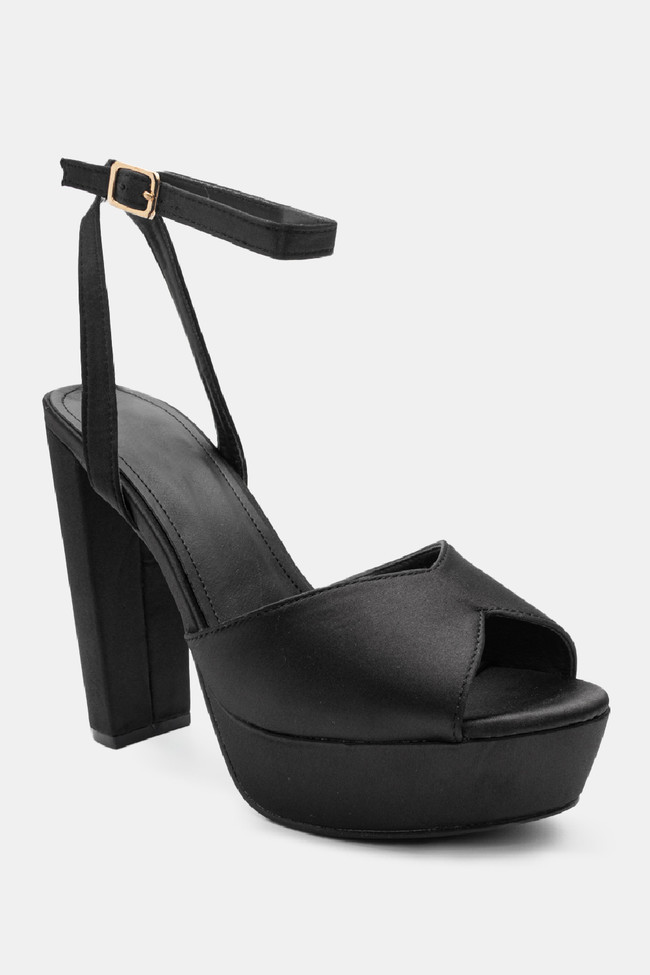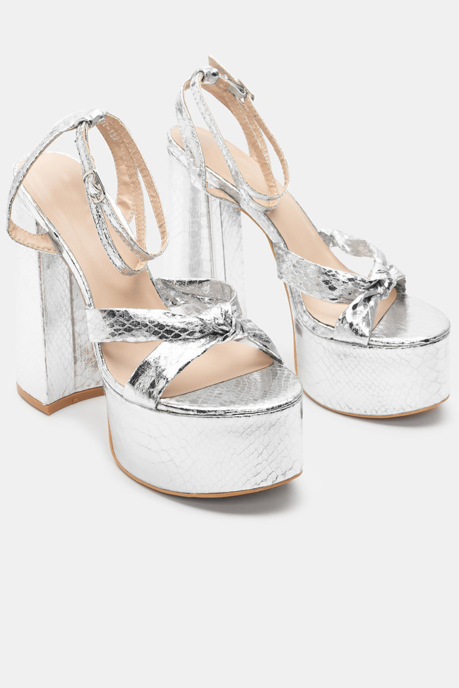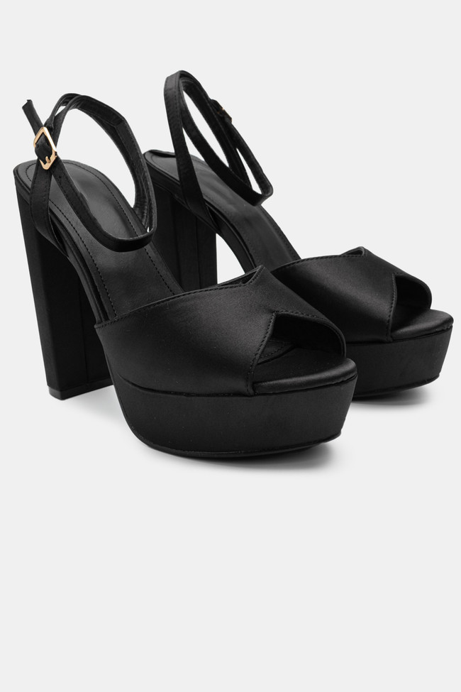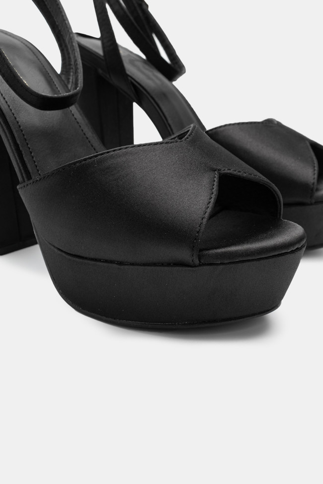 Sandale din Satin Peep Toe cu Bareta Înnodată & Platformă