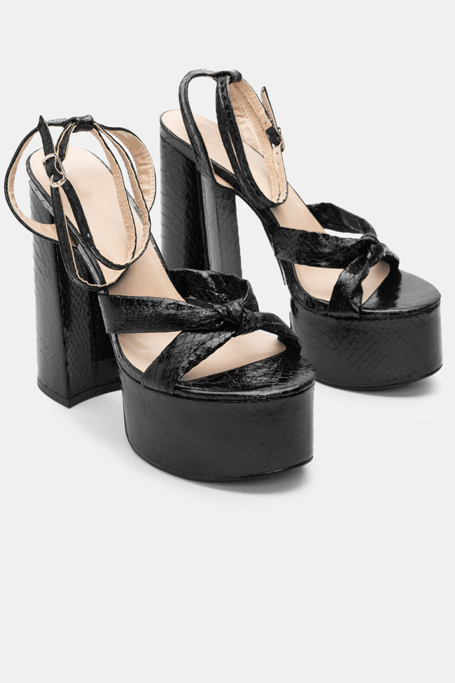 - Confortul întâlnește stilul: tocul gros, în combinație cu șireturile ce se înfășoară senzual în jurul gleznei, adaugă un vibe regal!