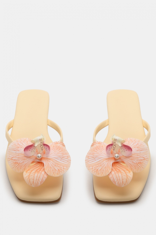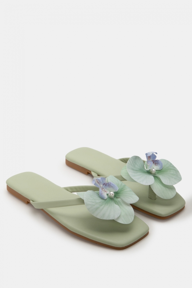 Sandale plate cu Floare Decorativă