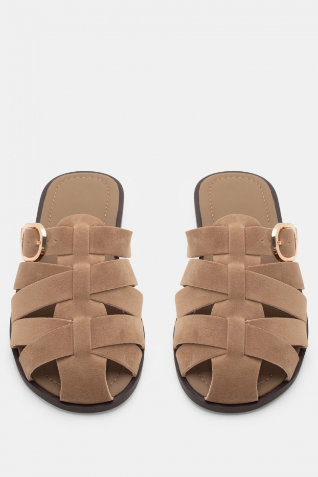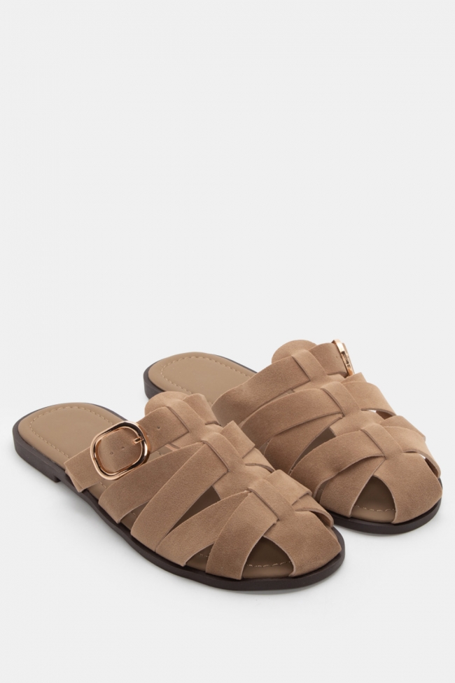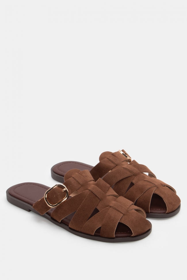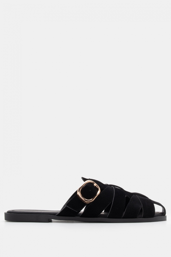 Sandale plate cu barete elaborate și cataramă