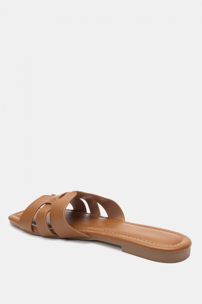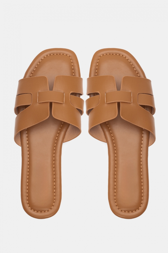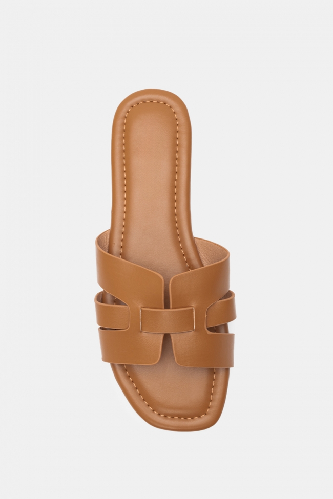 #1. Sandale plate cu linie minimală: Perfecte pentru lookuri zilnice cu blugi, pantaloni scurți sau rochii lejere.