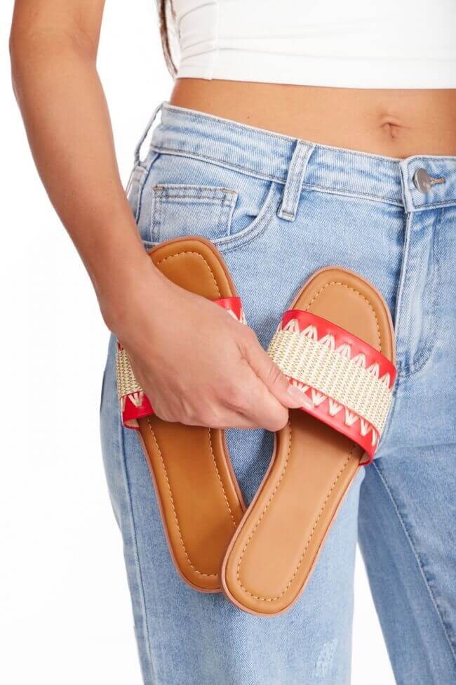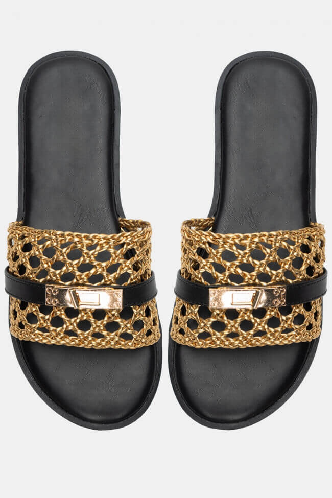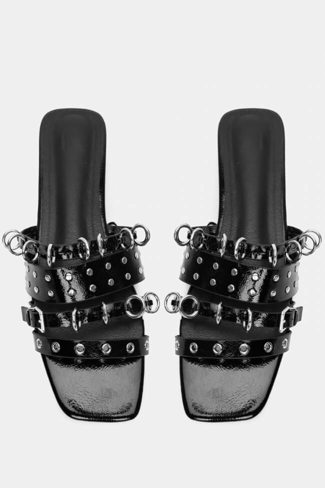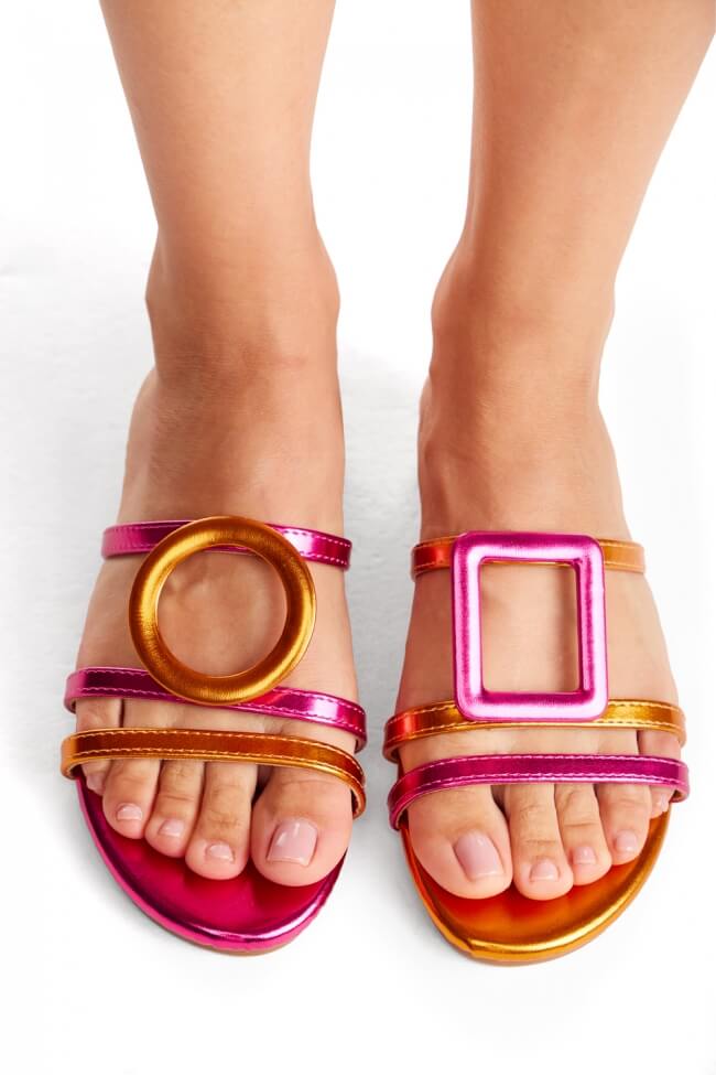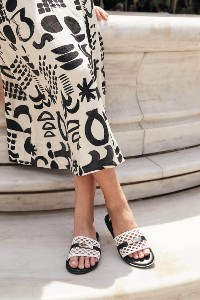 LUIGI DESIGN - Sandale Plate cu Detaliu Print