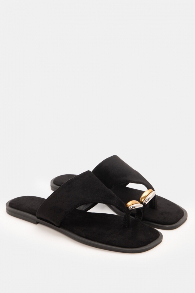 Sandale flat cu detaliu metalic