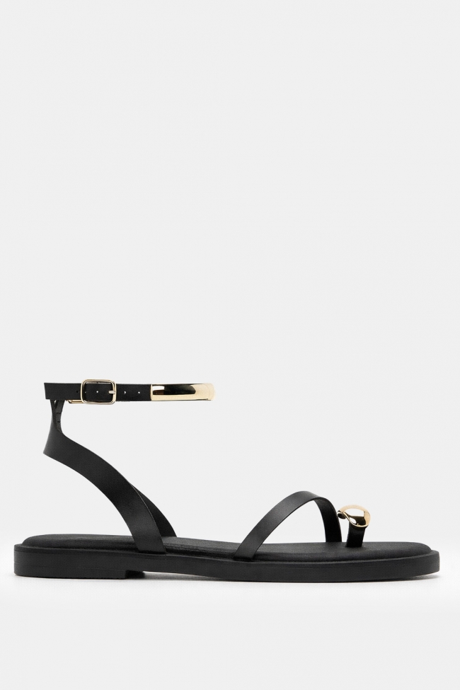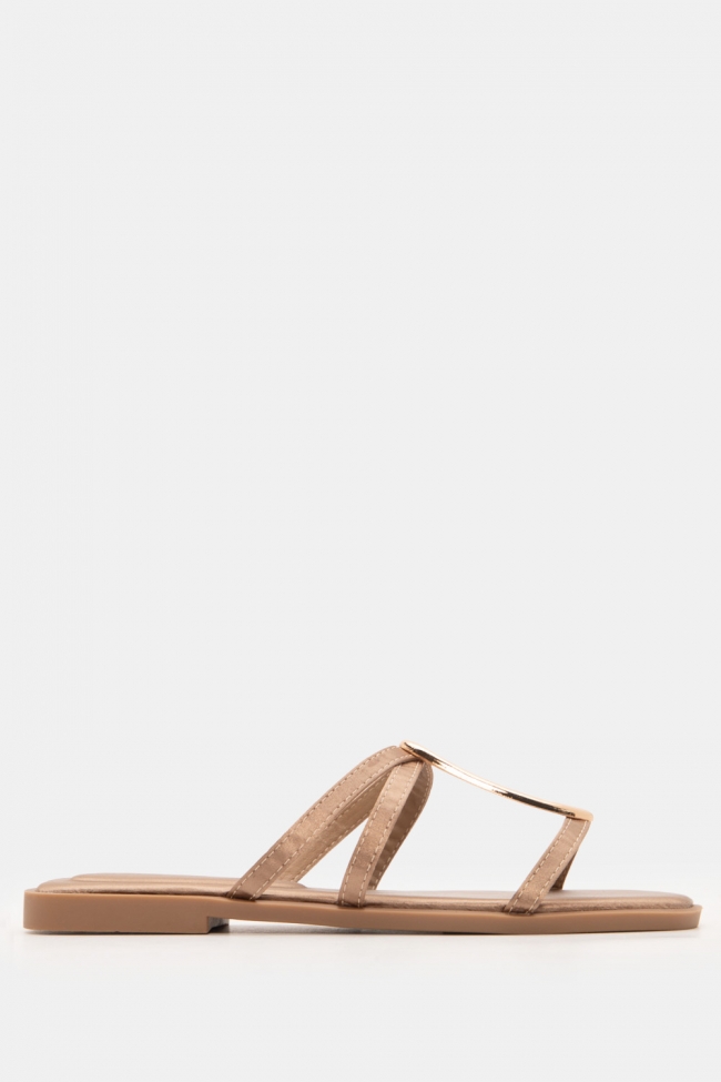 #1. Sandale plate cu linie minimală: Perfecte pentru lookuri zilnice cu blugi, pantaloni scurți sau rochii lejere.