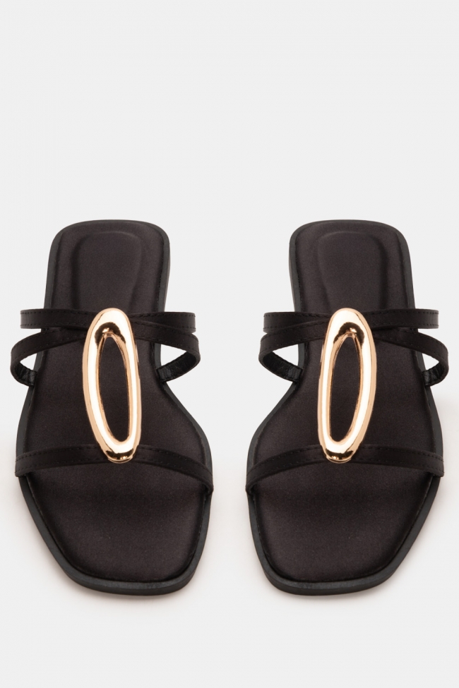 Pentru o dispoziție chic de seară, pantalonii negri cu un top din satin și sandale plate cu detalii metalice sunt alegerea ideală, în timp ce pentru eleganța urbană nu există o combinație mai elegantă decât un costum din in cu sandale minimalistice pentru confort și stil la fiecare pas.