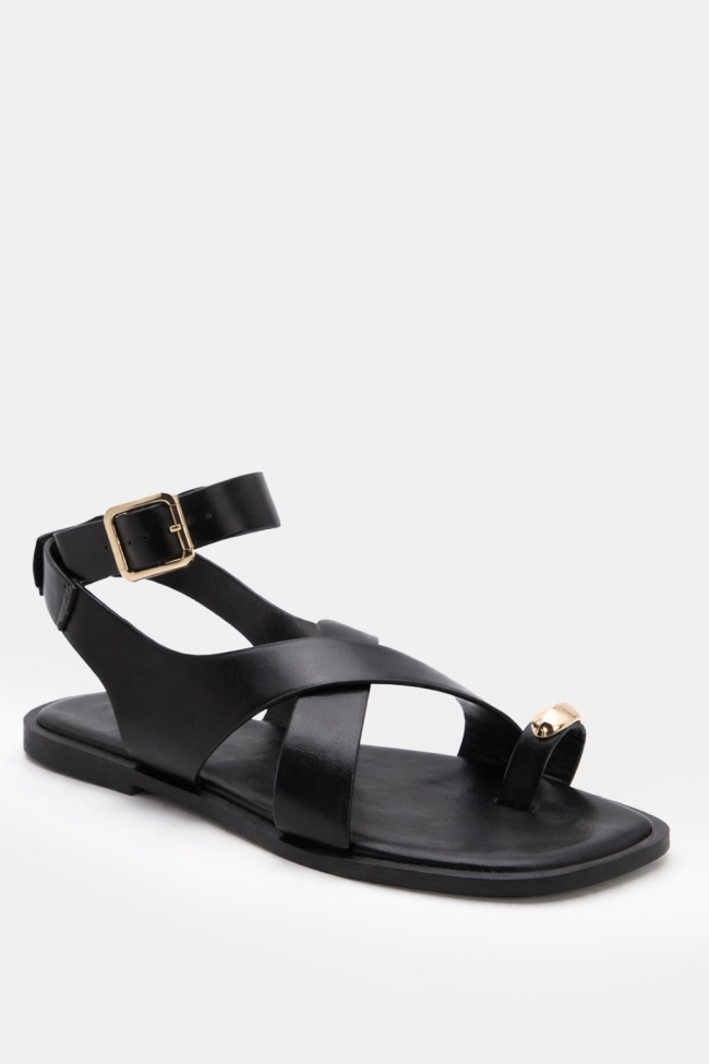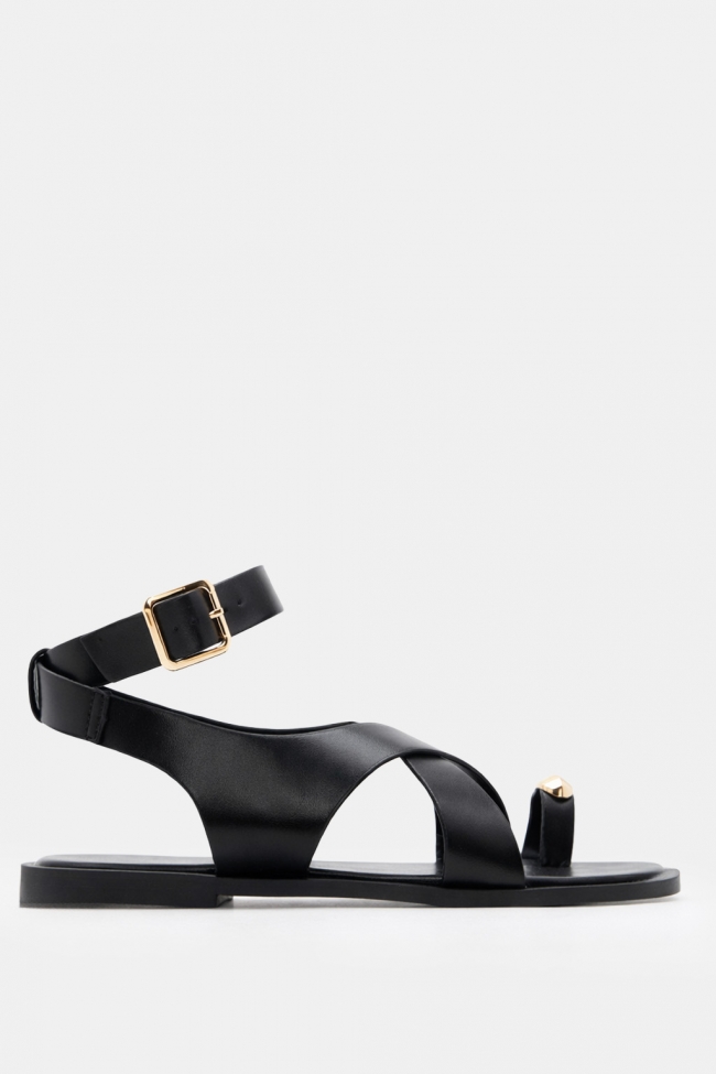 LUIGI DESIGN-Sandale plate cu barete încrucișate și strass