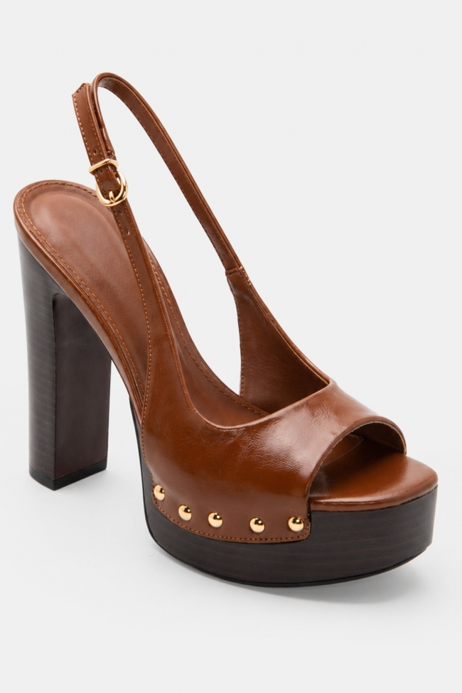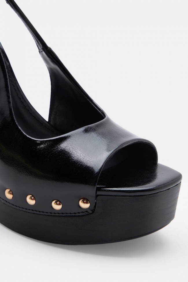 Sandale din piele întoarsă cu platformă și toc gros cu aspect de lemn
