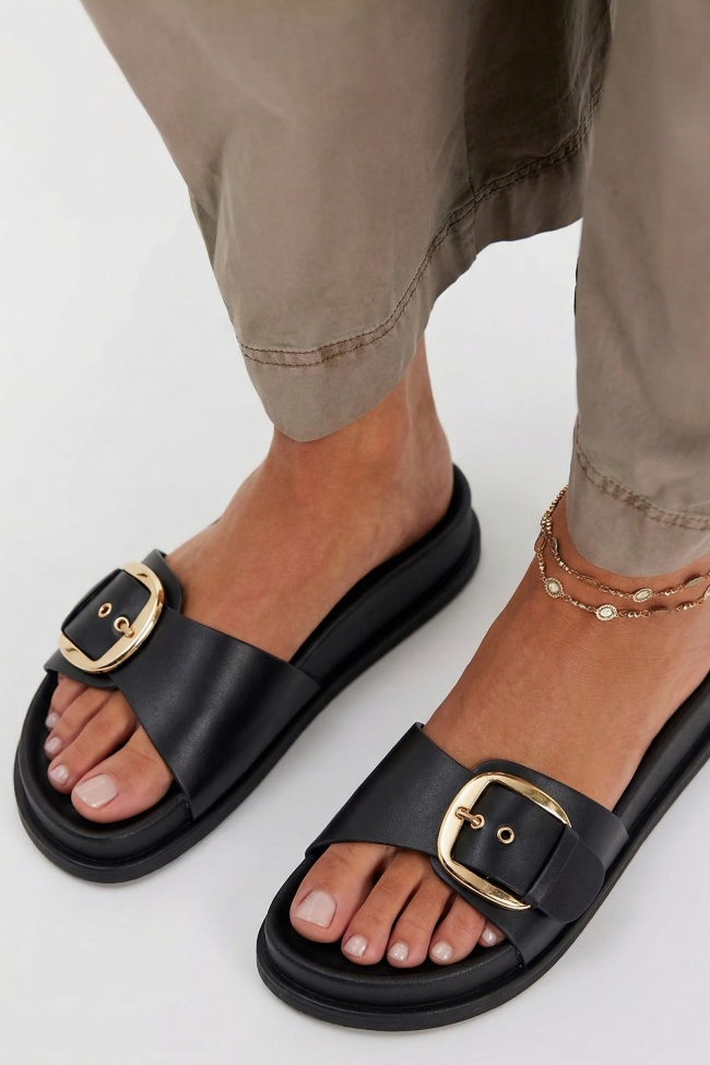 Mules con Cinturini Incrociati e Dettaglio Metallico