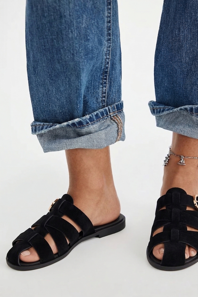 Sandali Bassi con Cinturini Elaborati e Fibbia