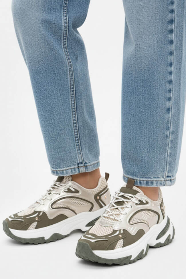 Sneakers în combinație de culori și materiale